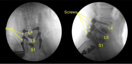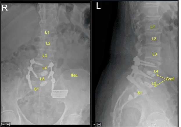 However, their back pain only worsened. Imaging showed loosening of bilateral pedicle screws and signs of pseudarthrosis. Surgery was recommended to stabilize the lumbar spine. The risks, benefits, alternatives and potential complications of the surgery were explained to them.