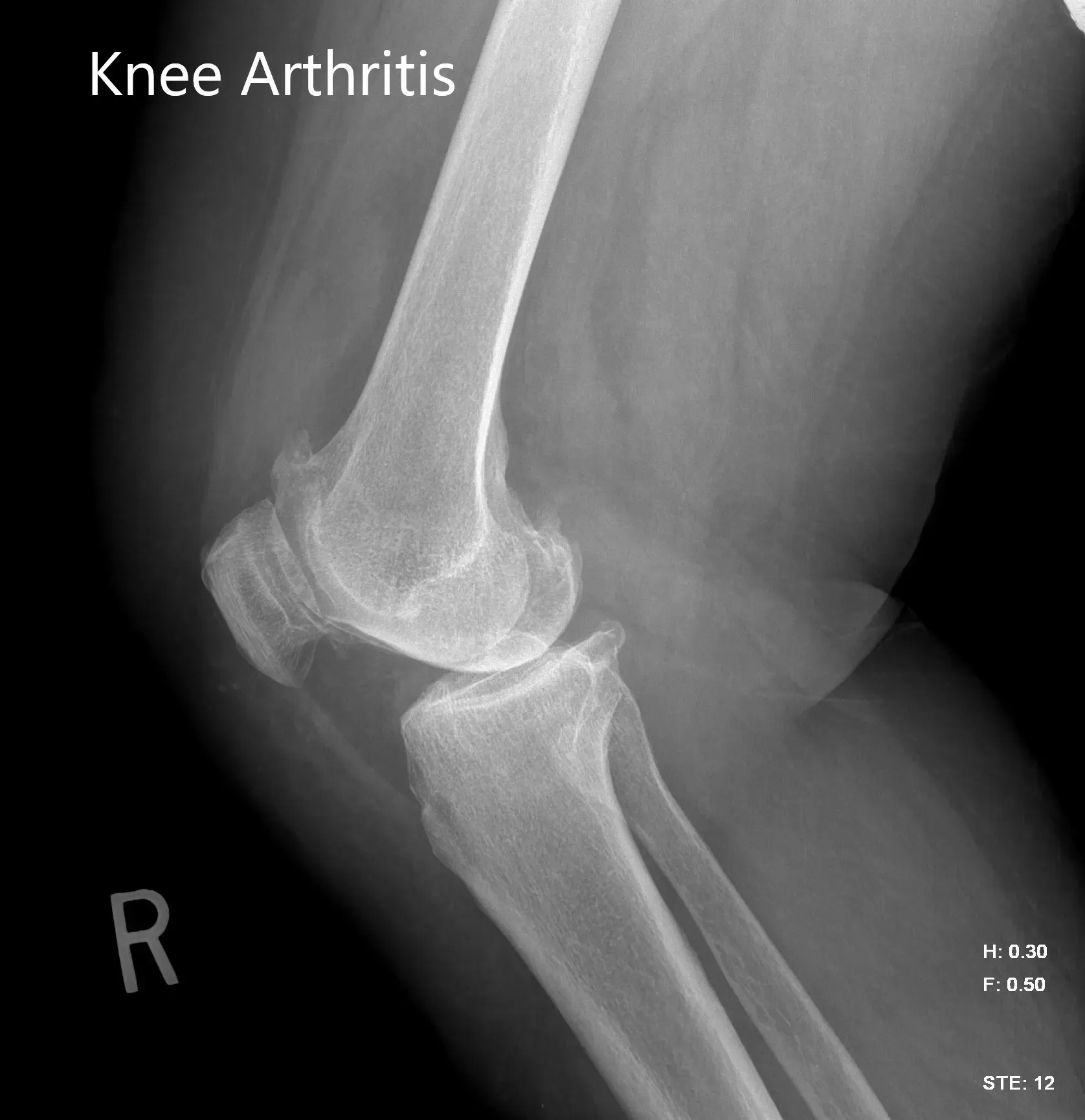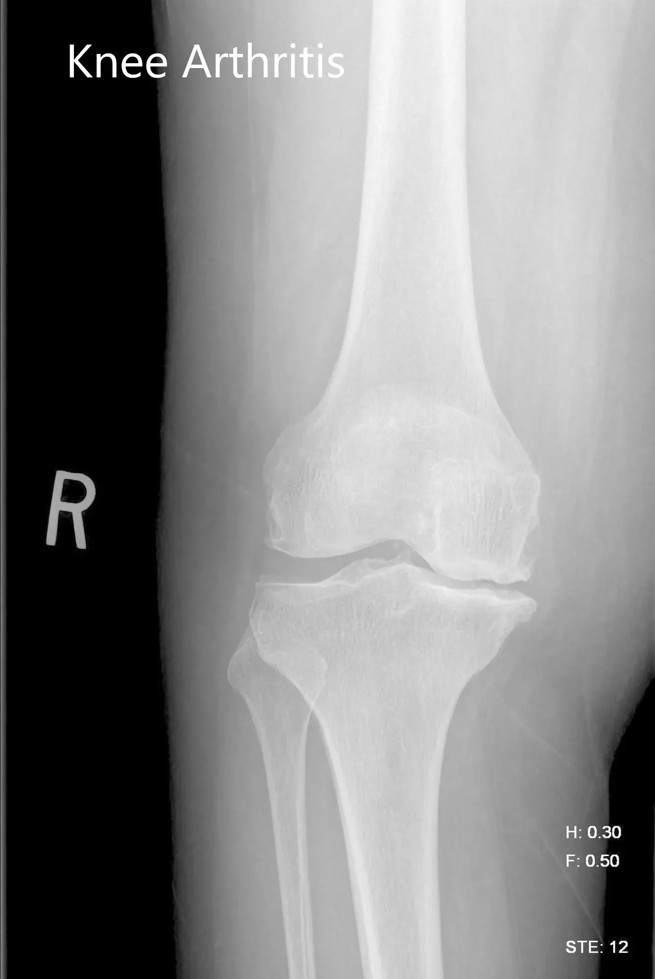 Preoperative X-ray image of the right knee showing AP and lateral views