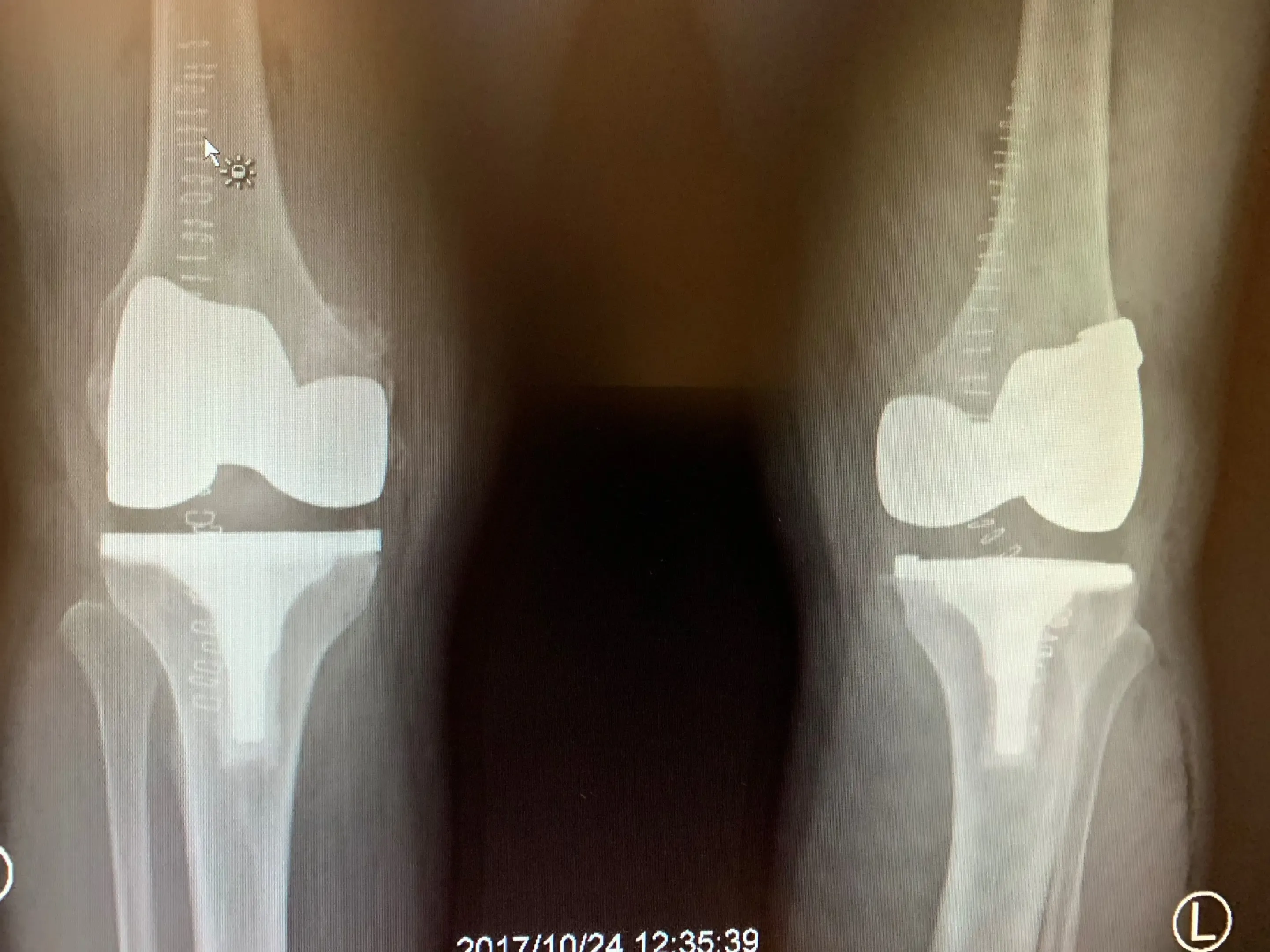 Simultaneous bilateral knee replacement in a 54-year-old female.