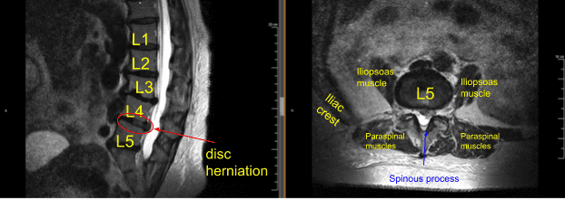 They had magnetic resonance Imaging (MRi) done which showed degenerative disc disease with kyphosis of the lumbar spine along with disc herniation of left L4-5. The images are shown below.