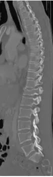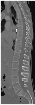 48 yo Female had a sledding injury when she landed on her buttocks following a fall. She felt a “pop” and immediate back pain. She was able to walk briefly, but quickly incapacitated by pain. Her examination suggested an injury to the lower thoracic spine. She was neurologically intact. She had uncontrolled pain. X Rays and CT scan of the patient showed fracture of T12 vertebral body.