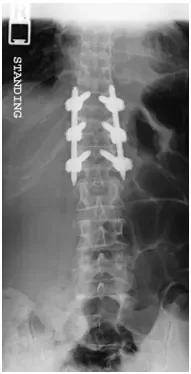 The fracture was stabilized by Minimal Invasive spine surgery with percutaneous pedicle screws in T11, 12 and L1 and rod fixation.