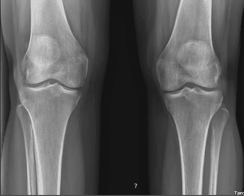 She takes Tylenol which helps. X-ray result presented today and it clearly showed her bilateral knees have mild patellofemoral compartment osteoarthritis and small joint effusion.