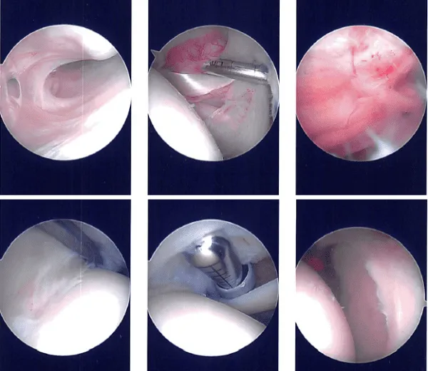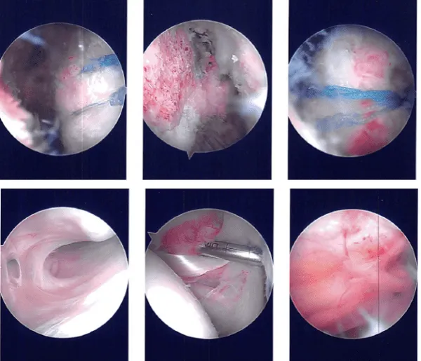 There was acromial spurring which was cleaned using a bur and sub acromioplasty was performed. After a thorough sub acromioplasty and release of CA ligament, the rotator cuff was inspected.