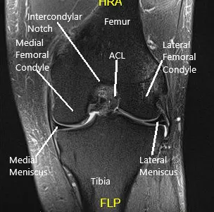 MRI of the knee in the sagittal and coronal section.
