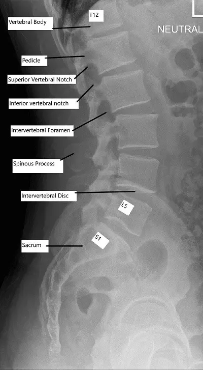 - Columna lumbar (parte inferior de la espalda): 5 vértebras (L1-L5)