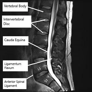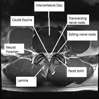 Resonancia magnética de la columna lumbar en corte axial y sagital