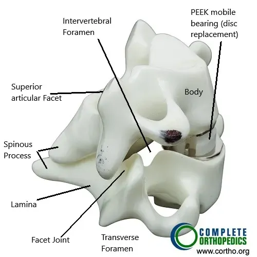 En la columna cervical, la sustitución discal artificial puede preservar el movimiento en el nivel afectado, ofreciendo una alternativa a la cirugía de fusión. Las imágenes postoperatorias garantizan que los implantes se coloquen correctamente y se mantenga la alineación de la columna vertebral.