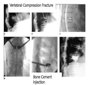 Los pacientes seleccionados adecuadamente se evaluan mediante rayos X y resonancia magnética. Ocasionalmente, puede ser necesario un TAC. Los pacientes que necesitan vertebroplastia o cifoplastia son llevados al quirófano. El procedimiento suele realizarse bajo anestesia general, pero también puede realizarse con anestesia local.