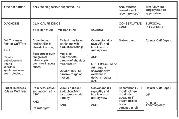 Se recomienda realizar pruebas complementarias (ecografía, artrografía o resonancia magnética) de desgarros del manguito rotador, lo cual es clínicamente apropiado en un subconjunto de pacientes.