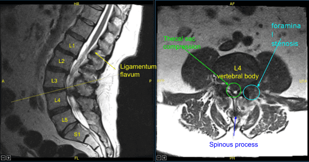 El paciente hizo un seguimiento dos semanas después de la cirugía en nuestra consulta ambulatoria. El paciente afirmó haber experimentado mejorías en el dolor de espalda y mostrar pocos o ningún signo de estenosis lumbar.