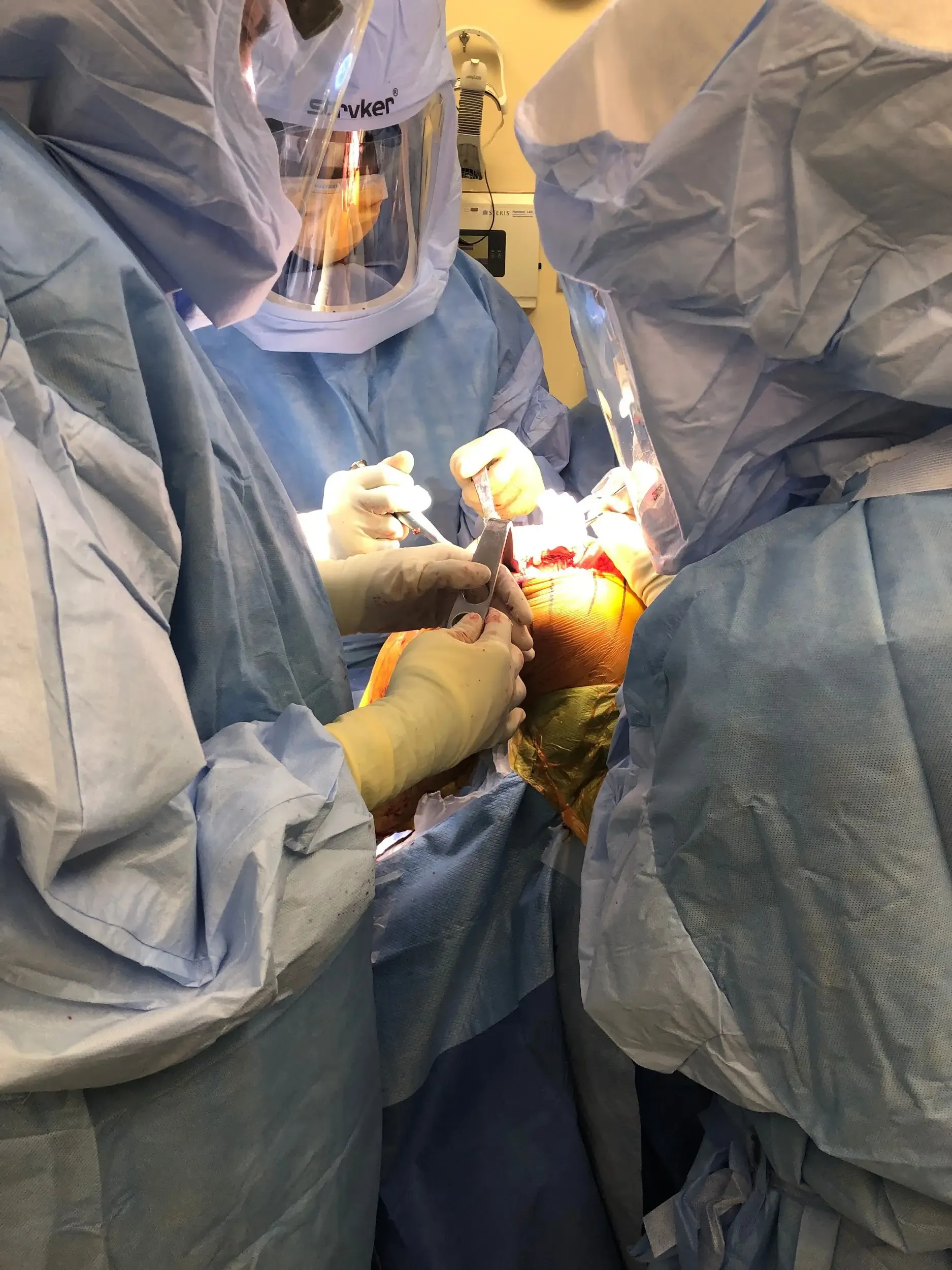 Antes del procedimiento, el paciente fue llevado al quirófano y el anestesista le proporcionó anestesia. La rodilla izquierda quedó entonces definitivamente posicionada y colocada de la forma habitual y estéril. Se utilizó una incisión recta para la artrotomía tras la exsanguinación del miembro y elevar el torniquete.