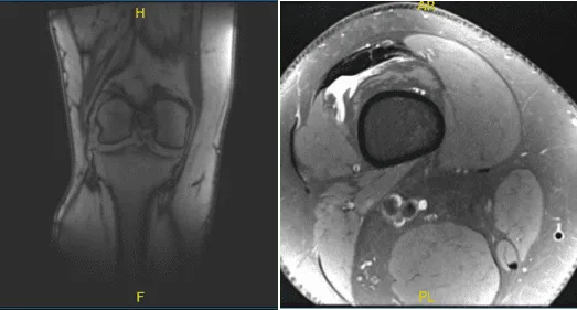 El paciente acudió a la consulta con una queja sobre el dolor en la rodilla derecha. Afirmó que se lesionó la rodilla al salir de la piscina y sintió un «chasquido» en la rodilla derecha. Afirmó que la intensidad del dolor es muy intensa.