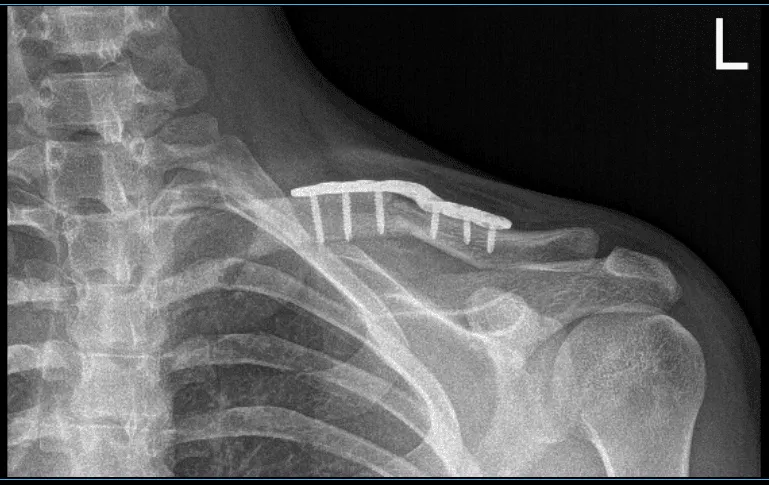 Resultados de la radiografía de 4 semanas de la clavícula izquierda tras la cirugía
