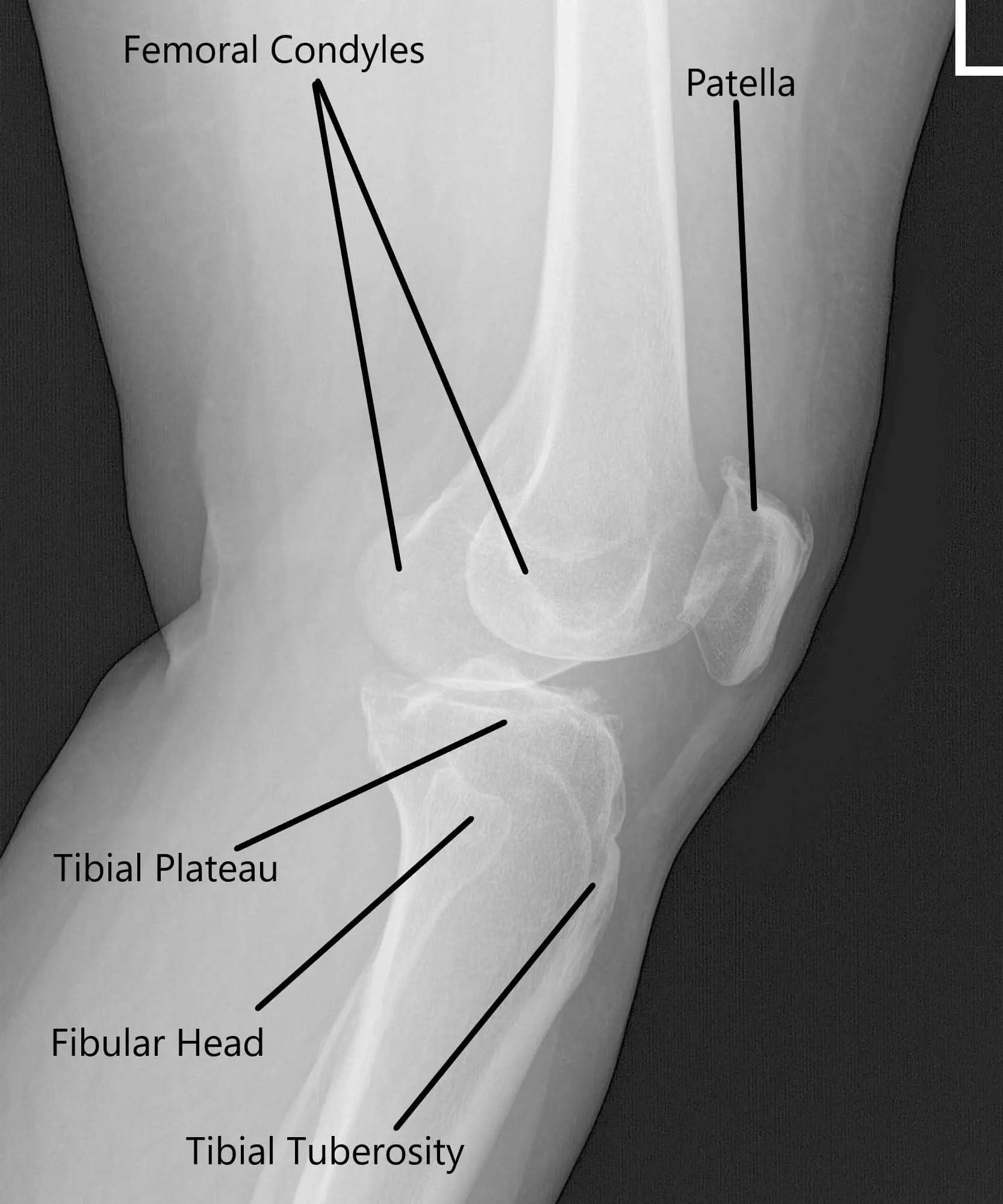 Radiografía de la rodilla izquierda que muestra las vistas AP y lateral.