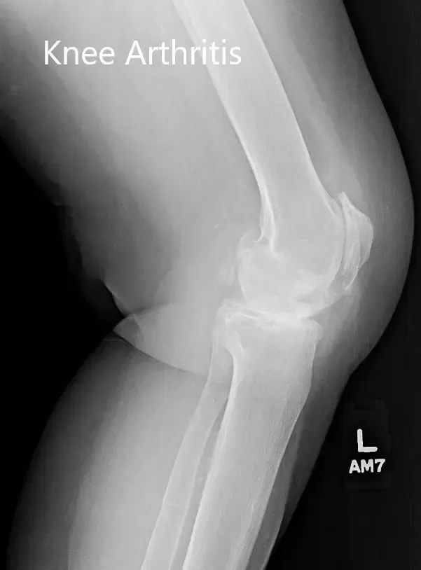 Radiografía preoperatoria que muestra la vista de la rótula con artritis patelofemoral severa