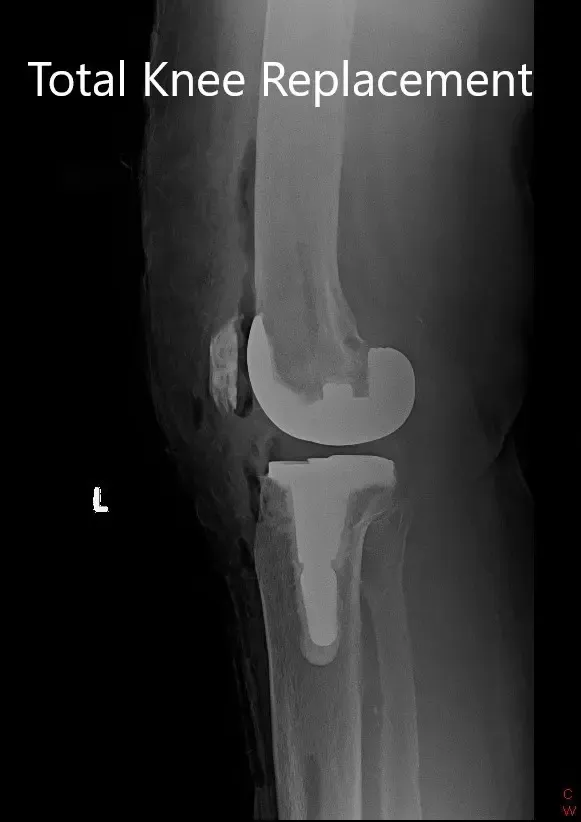 Los estudios de imagen revelaron osteoartritis bilateral severa. La rodilla izquierda estaba peor que la derecha. Teniendo en cuenta el dolor de rodilla limitante en el estilo de vida del paciente, se le recomendó un reemplazo total de rodilla izquierdo. Los riesgos, beneficios y alternativas se discutieron extensamente con el paciente y su hijo. Decidió seguir adelante con el procedimiento.