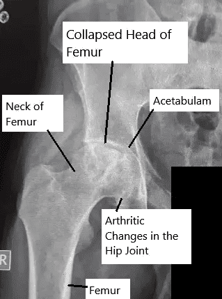 X-ray showing avascular necrosis of the hip joint.
