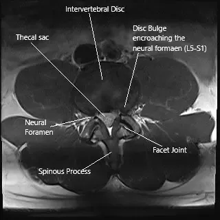Axial section of the spine at L5-S1 level on an MRI