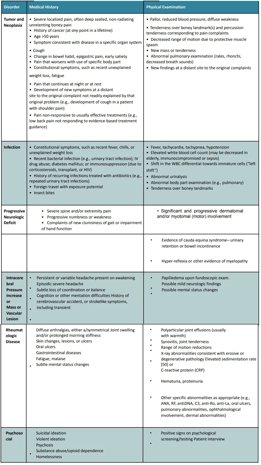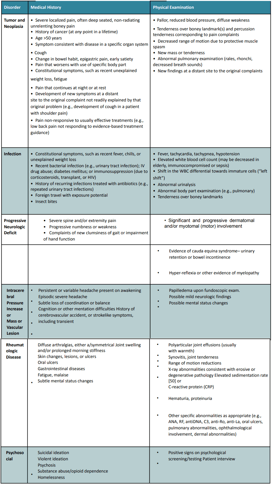 Table 1. Red Flags for Potentially Serious Conditions Associated with Chronic Pain*