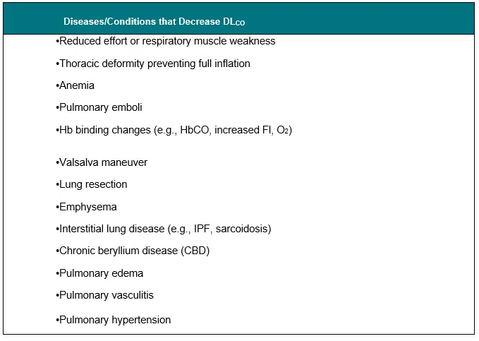 Table 3. Diseases /Conditions Associated with Alterations in DLCO