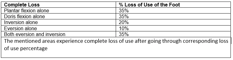 Percent Loss of Use of Foot