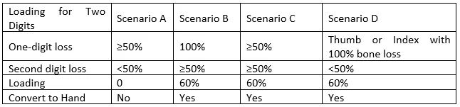 - Scenario B – The load is 60% and converted to a hand schedule when one digit has 100% loss of use and another digit has 50% loss of use.